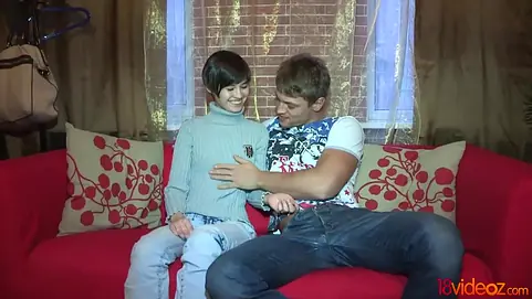 I was having a cup of coffee in my favorite cafe when I noticed this cute teeny giving me intriguing looks. With nothing else to do that night it took me no time to start a conversation and 30 minutes later we were at my place totally flirting, teasing one another and eventually getting naked for some casual fun. I gotta tell ya this sweetie sucked dick with so much skill and passion I could barely resist the temptation to cum right in her greedy mouth. She made me so horny I almost lost control fucking juice out of her tight young pussy from every angle and making her moan out loud.
