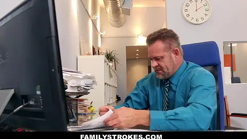 Attractive young teen babe Bambi Brooks rides her step dads mammoth sized hard dick after doing some office work.