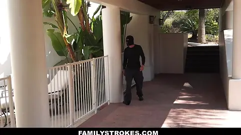 Marvelous sexy young teen stunner chick Jade Nile gets banged by her step dads giant hard cock while being dressed on a burglar clothes.